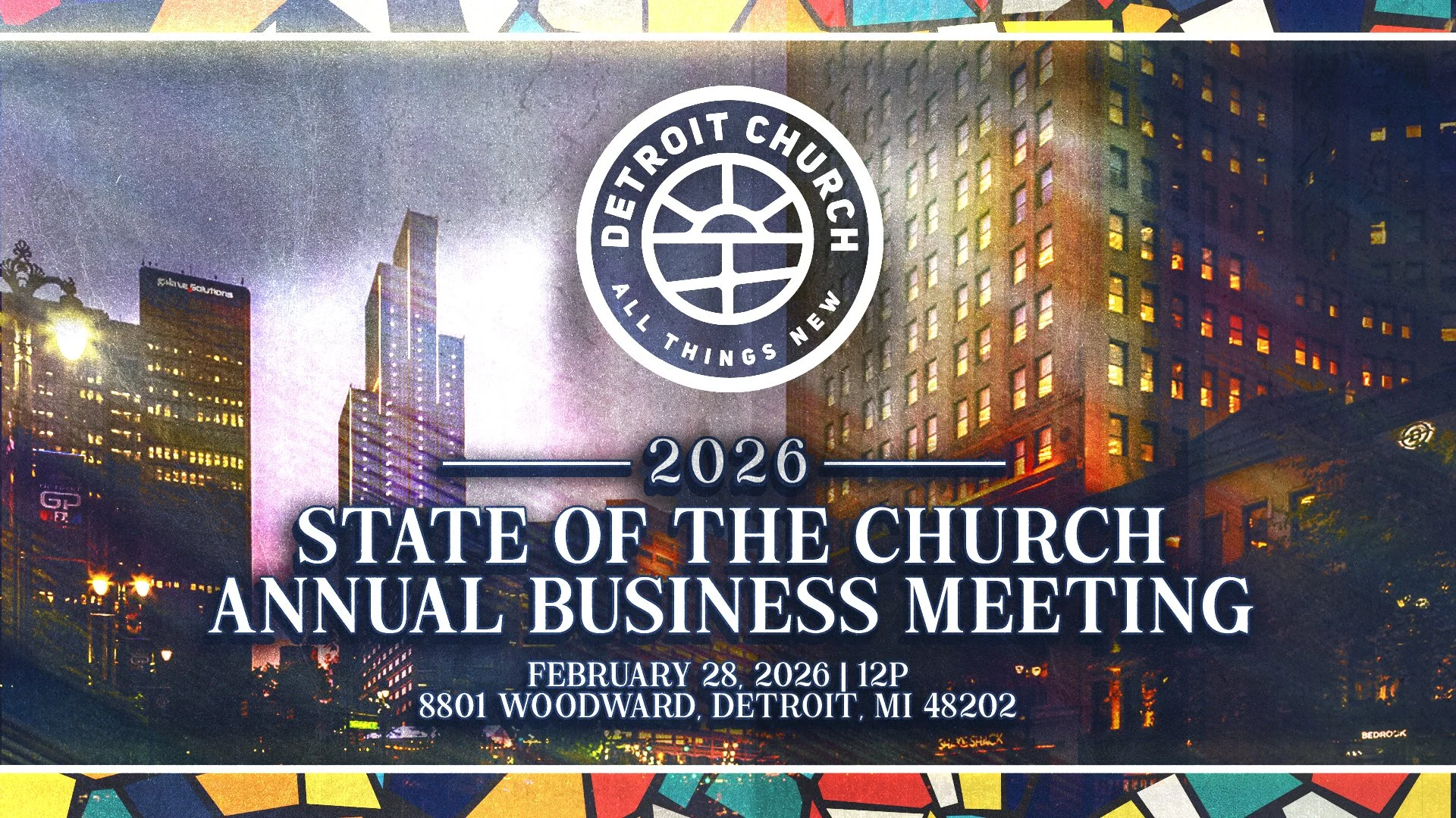 Mark your calendar for our State of the Church Annual Business Meeting on Saturday, February 28, 2025, at 12P at The Rec (Breakers Church), 8801 Woodward.