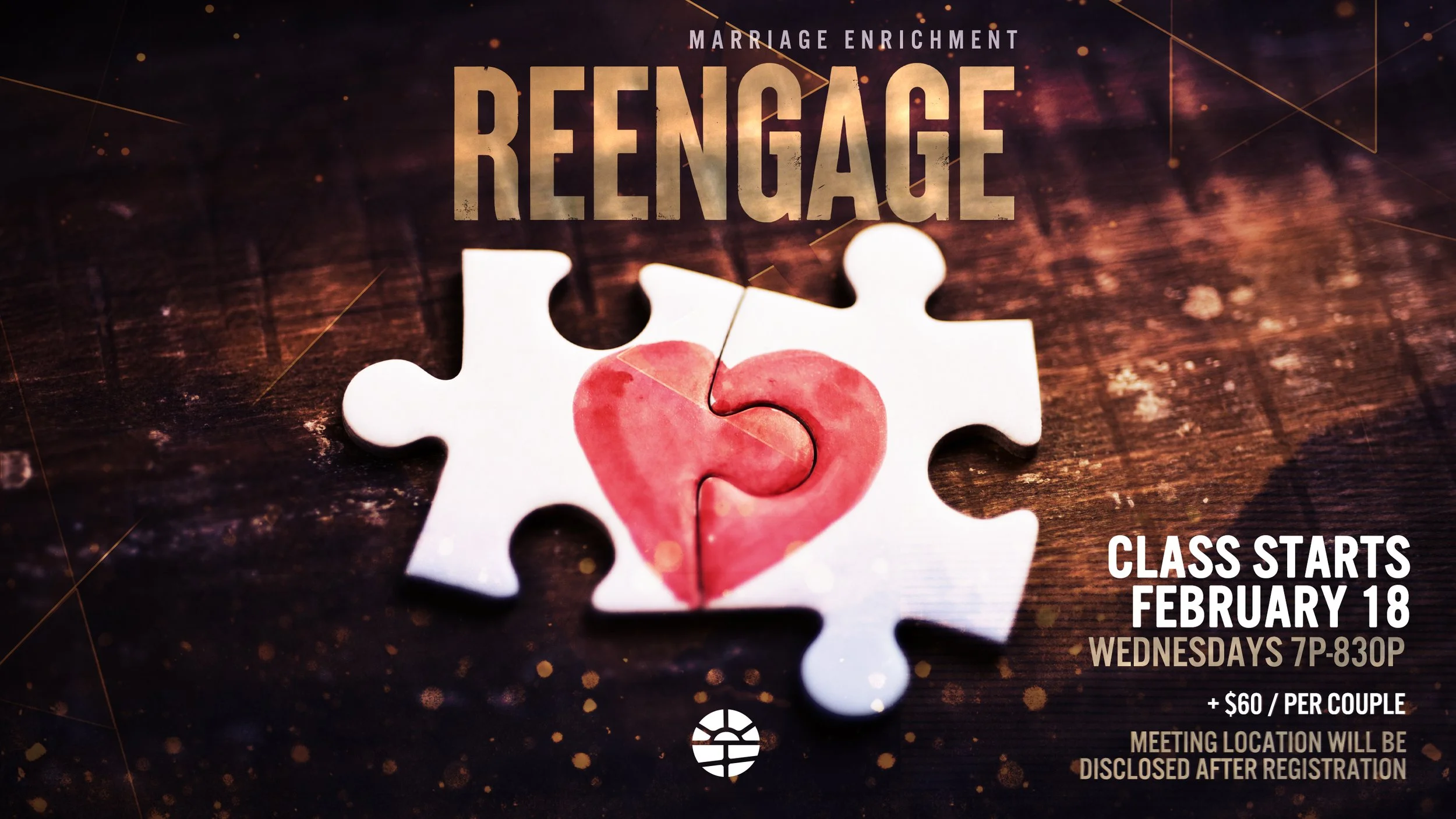 ReEngage is a comprehensive marriage enrichment opportunity for all couples. Whether you are doing great, need to reset or are hurting, ReEngage is a way forward. It is an authentic and realistic look into the covenant of marriage set in an environment that is safe and genuine. Couples who participate have opportunities for real growth! This is a place to deepen your commitment to God and to one another. It is a place to build resilience, satisfaction and oneness in your marriage!
